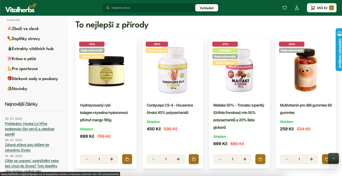 Vitalherbs – Vylepšení produktové prezentace a UX