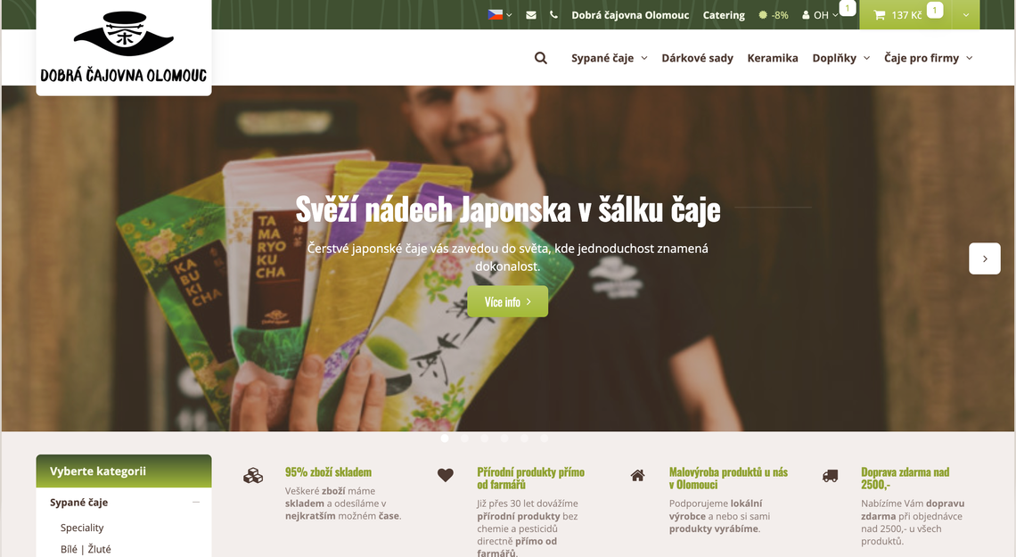 Migrace e-shopu Dobrá čajovna na Upgates: moderní design, mobilní optimalizace, integrace služeb, import zákazníků a stabilní provoz.