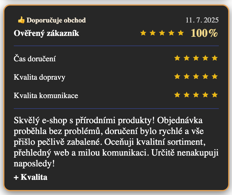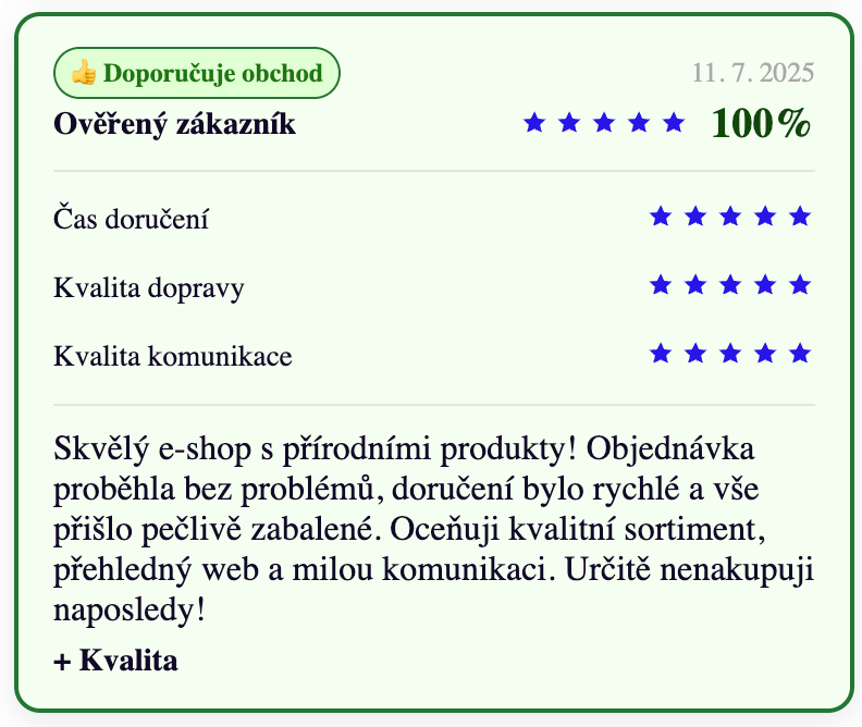 Řešení je plně kompatibilní i se zapnutým Designerem v Upgates a přizpůsobené vzhledu vašeho e-shopu. Recenze pomáhají budovat důvěru, zvyšují konverzní poměr a podporují rozhodování zákazníků při nákupu.